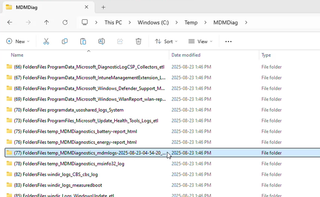 - Look for the following two files selected MDMDiagHTMLReport.xml and MDMDiagReport.xml and copy the files into a local folder: