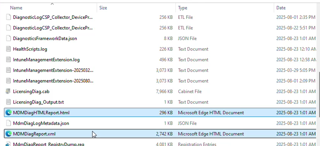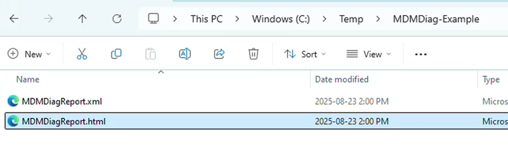- MDMDiagReport.xml – Machine-readable XML for automation