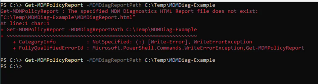 Get-MDMPolicyReport -MDMDiagReportPath "C:\YourFolderPath"