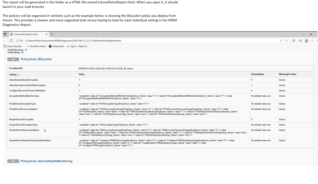 Finally, a GPResult alternative for Intune. Discover IntuneDebug and Get-MDMPolicyReport to create clean HTML reports for Intune policy troubleshooting.